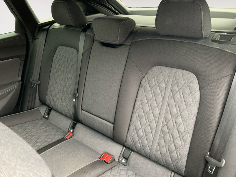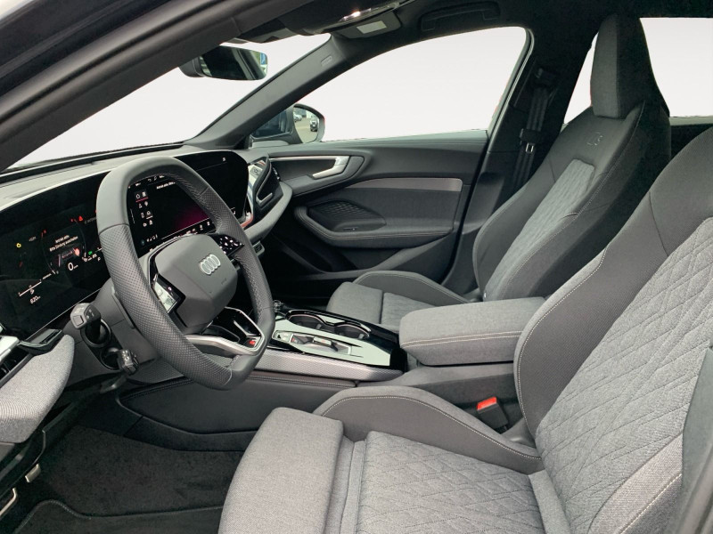 Interieur S line mit Sportsitzen Stoff schwarz; Sitzbezug / Polsterung: Stoff Kaskade / Impressum Kombination; Komfortmittelarmlehne vorn; Sportsitze vorn; 4-Wege-Lendenwirbelstütze für die Vordersitze; Sportlederlenkrad, 3-Speichen, oben und unten abgeflacht mit Multifunktion und Schaltwippen; Sitzheizung vorn; Kindersitzbefestigung i-Size auf der Beifahrerseite und i-Size und Top Tether auf den äußeren Fondsitzen; Telefonablage mit induktiver Ladefunktion