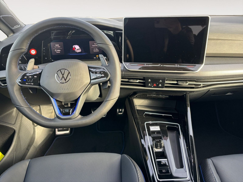 Innenfarbe: blau; R-Performance-Abgasanlage, Endschalldämpfer in Titan, Volkswagen R; Assistenzpaket; Technikpaket "Park & Comfort Pro"; Infotainment-Paket "Discover"; Farbe Grenadillschwarz Metallic; Umfeldbeleuchtung mit Lichtprojektion; Allradantrieb 4MOTION; Adaptive Fahrwerksregelung DCC inkl. Fahrprofilauswahl; Stoßfänger und Schwellerverbreiterung im "R"-Styling; Abbiegebremsfunktion und Ausweichunterstützung; Dekoreinlagen "Mesh" für Instrumententafel und Türverkleidungen vorn; Anhebung der elektronischen Begrenzung der Höchstgeschwindigkeit; 12-V-Steckdose im Gepäckraum; Infotainment-System mit 32,7-cm-Display (12,9 Zoll); Ländercluster "WLTP EU-Genehmigung"; R; Fahrzeuge mit besonderen Produktaufwertungsmaßnahmen; Ambientebeleuchtung 30-farbig, Ablagefach in der Mittelkonsole vorn beleuchtet; Volkswagen Logo vorn, Leiste zwischen den Scheinwerfern sowie Türgriffmulden beleuchtet; Elektronische Parkbremse inkl. Auto-Hold-Funktion; Pedale in Edelstahl gebürstet