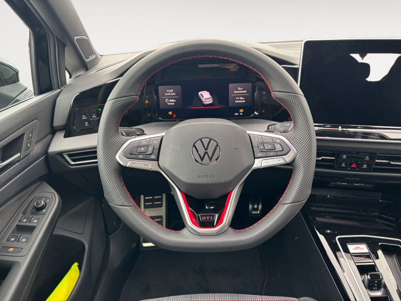 Soul-Schwarz - Tornadorot/Soul-Schwarz/ Schwarz/Soul-Schwarz; Assistenzpaket; Technikpaket "Park & Comfort Pro"; "Business Premium"-Paket; Design-Paket "Black Style" inkl. IQ.LIGHT - LED-Matrix-Scheinwerfer; Farbe Grenadillschwarz Metallic SN 7; Umfeldbeleuchtung mit Lichtprojektion; Fahrprofilauswahl; Vordersitze mit Höheneinstellung; Abbiegebremsfunktion und Ausweichunterstützung; Dekoreinlagen "Mesh" für Instrumententafel und Türverkleidungen vorn; 12-V-Steckdose im Gepäckraum; Infotainment-System mit 32,7-cm-Display (12,9 Zoll); Ländercluster "WLTP EU-Genehmigung"; GTI; Fahrzeuge mit besonderen Produktaufwertungsmaßnahmen; Ambientebeleuchtung 30-farbig, Ablagefach in der Mittelkonsole vorn beleuchtet; Volkswagen Logo vorn, Leiste zwischen den Scheinwerfern sowie Türgriffmulden beleuchtet; Elektronische Parkbremse inkl. Auto-Hold-Funktion; Pedale in Edelstahl gebürstet