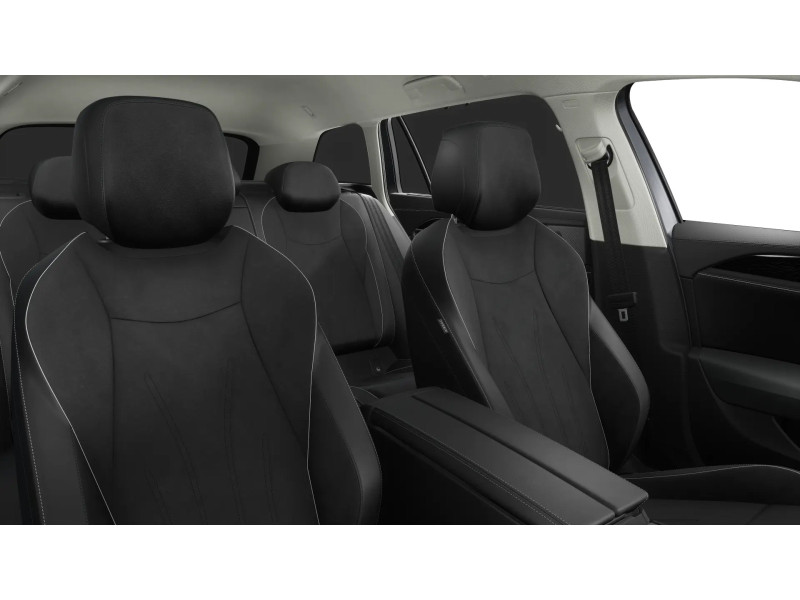 Sitzmittelbahnen der Vordersitze und deräußeren Rücksitzplätze in Mikrovlies "ArtVelours Eco"; Sport-Komfortsitze vorn; ergoActive-Sitze vorn höheneinstellbar, mit verschiebbarer Oberschenkelauflage; Multifunktionslenkrad in Leder, beheizbar, mit Schaltwippen; Rücksitzlehne asymmetrisch geteilt umklappbar, mit Durchlademöglichkeit; Sonnenschutzrollo an den Türscheiben hinten; Frontscheibe in Verbundsicherheitsglas, drahtlos beheizbar und infrarot-reflektierend, geräuschdämmend; Innenspiegel automatisch abblendend; Mittelarmlehne hinten verschiebbar, mit Becherhaltern und Ablagemöglichkeit für Handy/Tablet; Lendenwirbelstützen vorn pneumatisch einstellbar