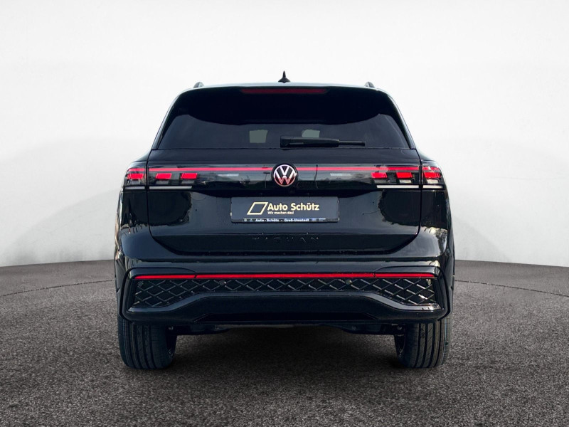 Soul-Schwarz/Soul-Schwarz/Schwarz/ Soul-Schwarz; Netztrennwand; Anhängevorrichtung inkl. Anhängerrangierassistent "Trailer Assist"; Assistenzpaket "IQ.DRIVE"; Infotainment-Paket "Discover Pro Max"; Design-Paket "Black Style"; Farbe Grenadillschwarz Metallic SN 12; Anhängevorrichtung anklappbar, mit elektrischer Entriegelung, inkl. Anhängerrangierassistent Trailer Assist; Allradantrieb 4MOTION; Stoßfänger im "R-Line"-Styling, Lufteinlass mit Leiste in Schwarz hochglänzend; Mittelkonsole gepolstert; Gepäckraumboden, ebene Ladefläche, mit Verzurrösen; Abbiegebremsfunktion und Ausweichunterstützung; Zierleisten in Schwarz hochglänzend an den Seitenfenstern; Rücksitzbank längs verschiebbar, -lehne asymmetrisch geteilt umklappbar, Neigung einstellbar, mit Durchlademöglichkeit; Dekor-Set "R-Line", durchleuchtet; Außenspiegelgehäuse schwarz; Dachhimmel schwarz; 12-V-Steckdose im Gepäckraum; Einstiegsleisten vorn in Aluminium; Infotainment-System mit 38,1-cm-Display (15 Zoll); 12-V-Steckdose in der Mittelkonsole vorn; Ländercluster "WLTP EU-Genehmigung"; Hinterachsgewicht Ausführung 4; Sondermaßnahme A (Ausführung 1); Sondermaßnahme B (Ausführung 1); Sondermaßnahme C (Ausführung 1); Sondermaßnahme D (Ausführung 1); Fahrerlebnisschalter inkl. Innenraumerlebnis "Atmospheres"; Ambientebeleuchtung 30-farbig, in der Instrumententafel sowie in den Türen, Dekoreinlagen vorn durchleuchtet; Volkswagen Logo vorn und hinten, Leiste zwischen den Scheinwerfern/Rückleuchten beleuchtet, mit Animation; Elektronische Parkbremse inkl. Auto-Hold-Funktion; Pedale in Edelstahl gebürstet
