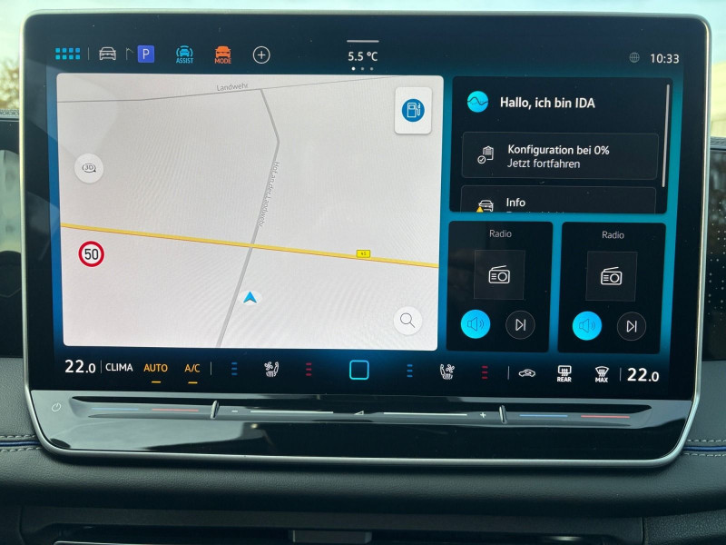 Navigationssystem; Diversity-Antenne für FM-Empfang; App-Connect Wireless für Apple CarPlay und Android Auto; Sprachassistent IDA und elektronische Sprachverstärkung; Digitaler Radioempfang DAB+; 2 USB-C-Schnittstellen vorn, 2 USB-C-Ladebuchsen an der Mittelkonsole hinten, Ladeleistung bis zu 45 W