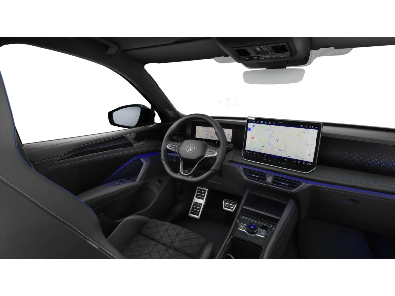 Multifunktions-Sportlenkrad in Leder, beheizbar, mit Schaltwippen; Frontscheibe in Verbundsicherheitsglas, drahtlos beheizbar und infrarot-reflektierend, geräuschdämmend; Innenspiegel automatisch abblendend; Mittelarmlehne vorn; Lendenwirbelstützen vorn pneumatisch einstellbar; Telefonschnittstelle "Comfort" mit induktiver Ladefunktion für 2 Smartphones, Ladeleistung bis zu 15 W; Sitzmittelbahnen der Vordersitze und der äußeren Rücksitzplätze in Stoff "R-Line"; Sport-Komfortsitze vorn